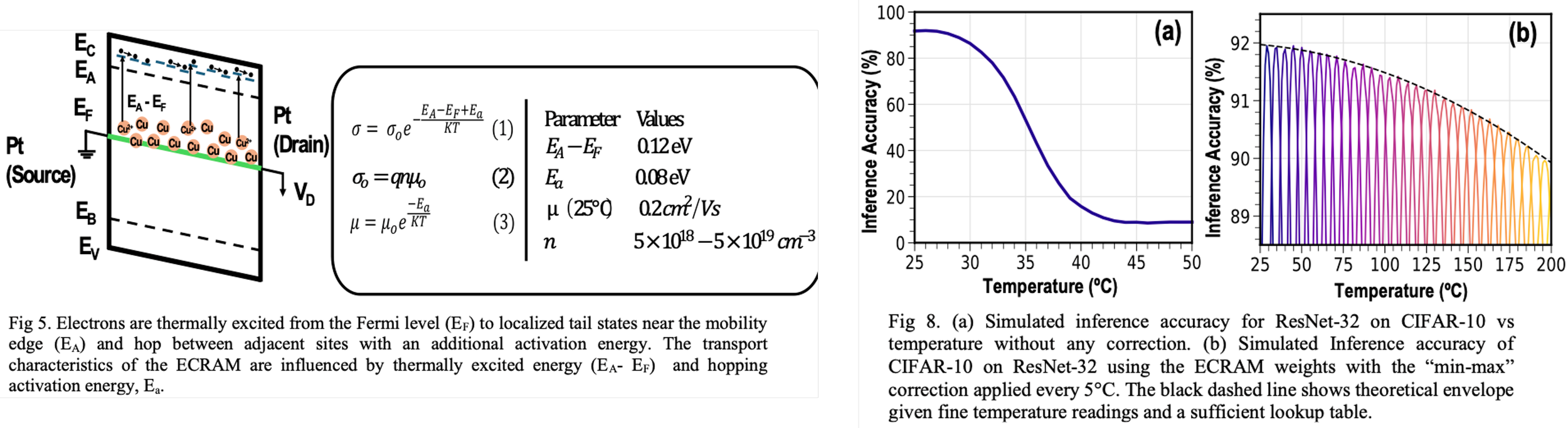 Characterized Electro-Chemical Random-Access-Memory (ECRAM) temperature-dependent conductance and developed a transport model to be used in neural network inference simulation