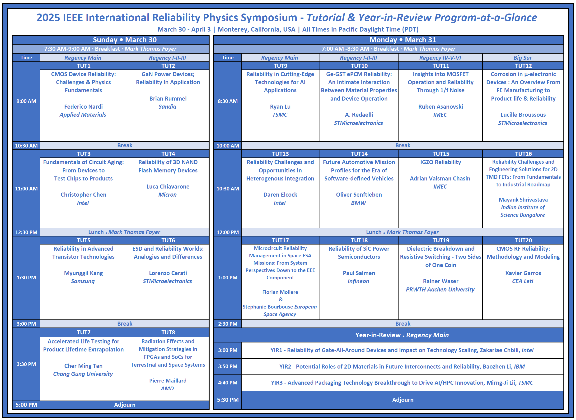We will discuss the advanced logic technology roadmap and device reliability constraints for both Front-End-of-Line (FEOL) and Back-End-of-Line (BEOL) processes. Then we will delve into the physics of device reliability from an atomic defect perspective, focusing on defect trapping and generation, and covering key reliability issues such as Bias Temperature Instability (BTI), Self-Heating Effects (SHE), Breakdown/Time-Dependent Dielectric Breakdown (BD/TDDB), and Electromigration (EM), with a focus on BD characterization and modeling. Additionally, we will discuss the challenges in characterization, including the transition from accelerated tests to real operating conditions and the shift from simple test vehicles to complex 3D devices. We will emphasize the role of physical modeling, with a focus on connecting process steps to material properties and predicting device and circuit behavior based on these properties.